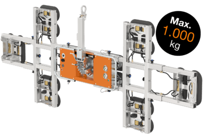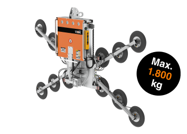 Capable of lifting up to 1800 kg for glass and 800 kg for sandwich panels, with lengths reaching up to 28 meters.