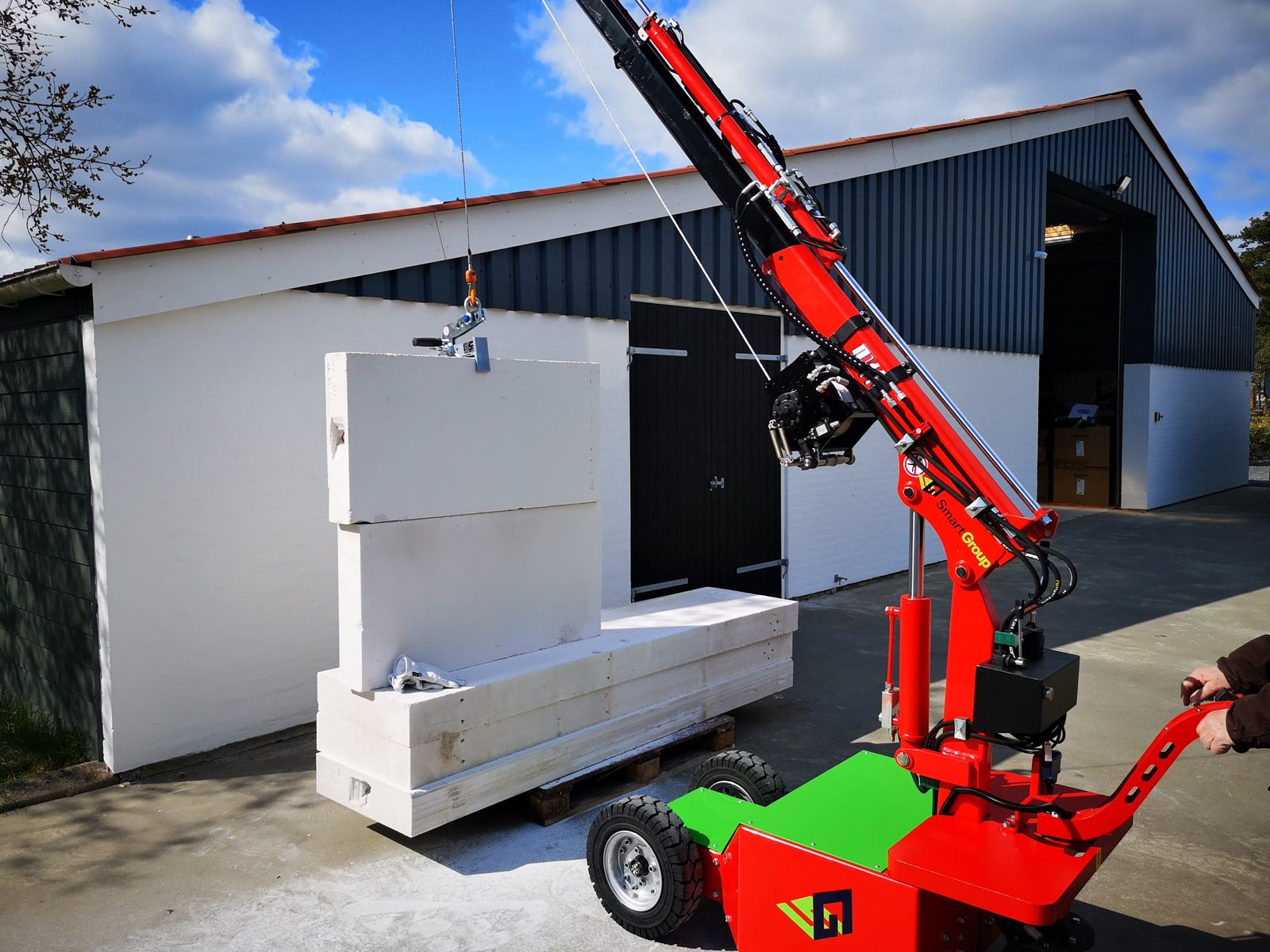 Reach of up to 4 meters with a capacity of 350 kg. Additionally, a manual extension up to 5 meters with a capacity of 250 kg