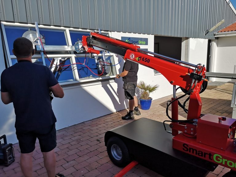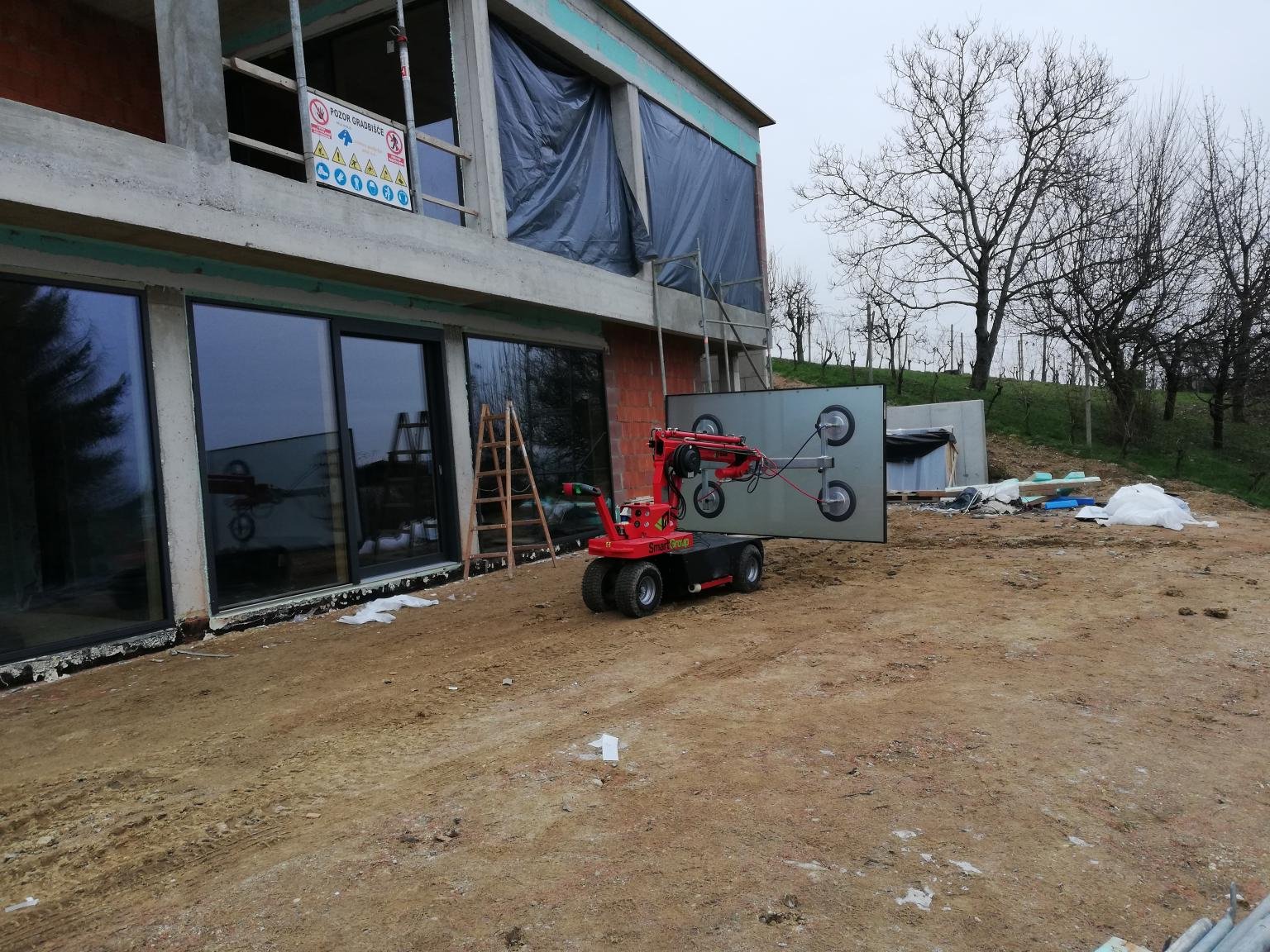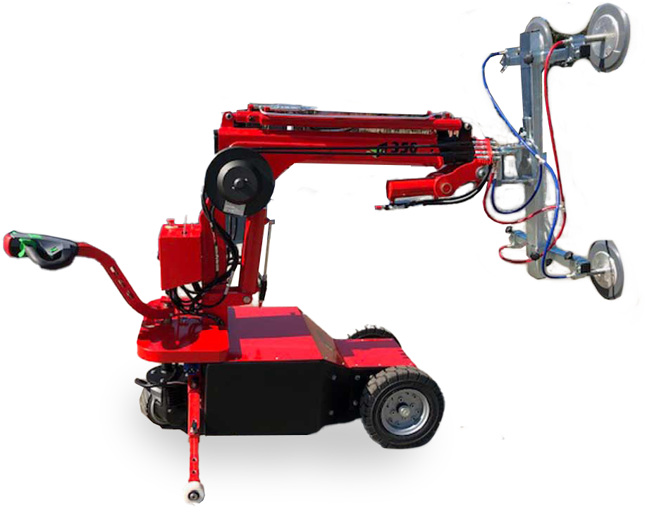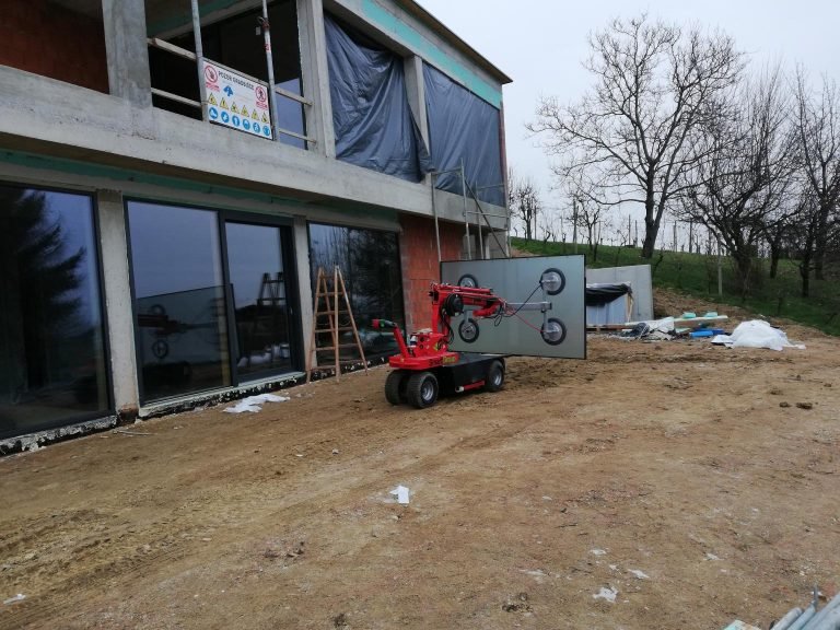 In terms of large windows, as well as panels, the vacuum powered hydraulic glass lifting robots are perfect for this job.